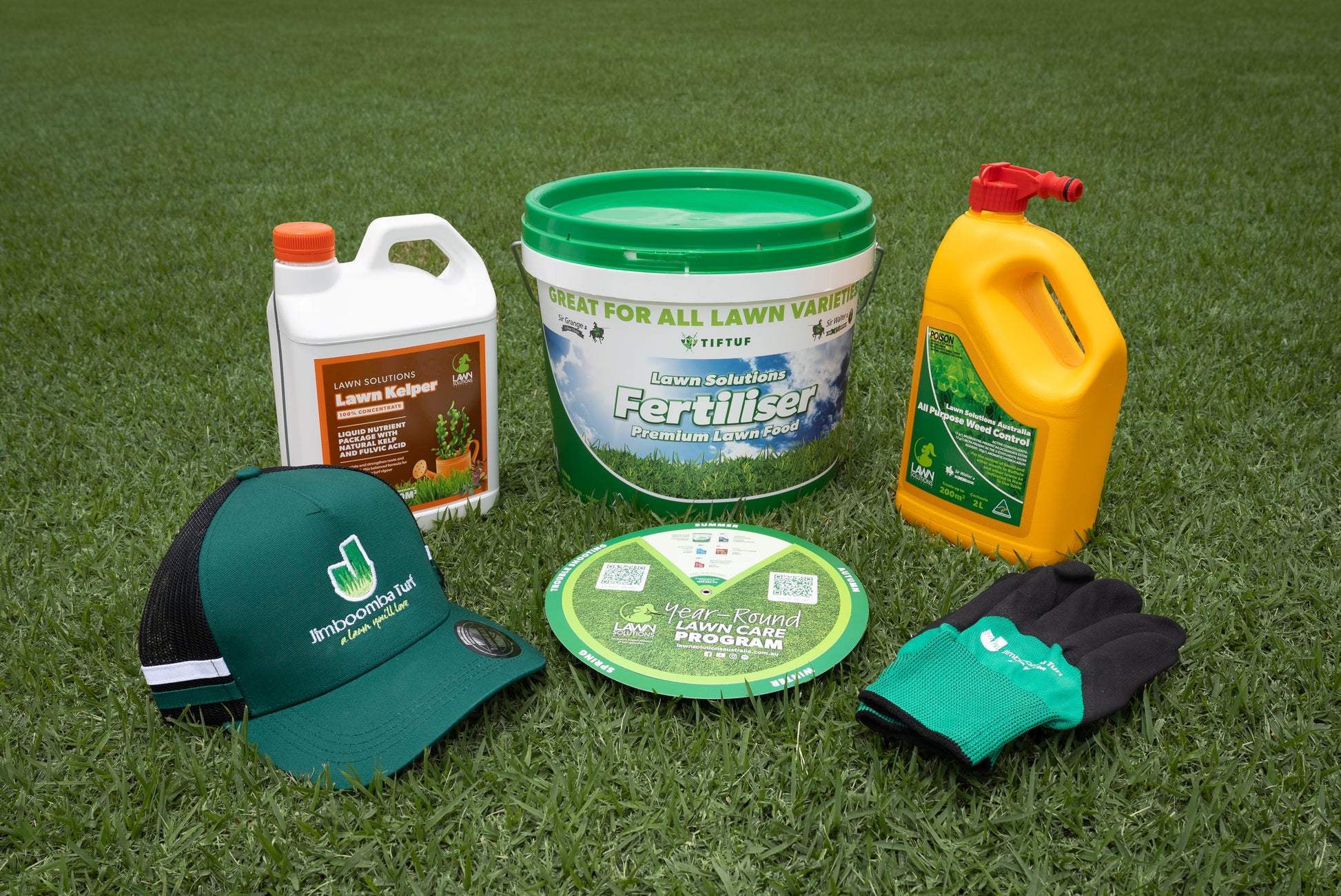 Also includes Jimboomba Turf gardening gloves & cap