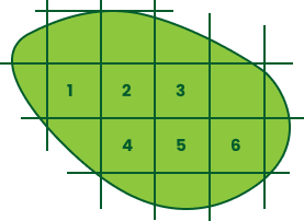 Start by taking key points of the lawn such as the widest and longest points. Count the number of full squares, estimate the area of the partially filled squares, and add the amounts for an approximate total area. If in doubt, it is better to overestimate the area than to underestimate it.